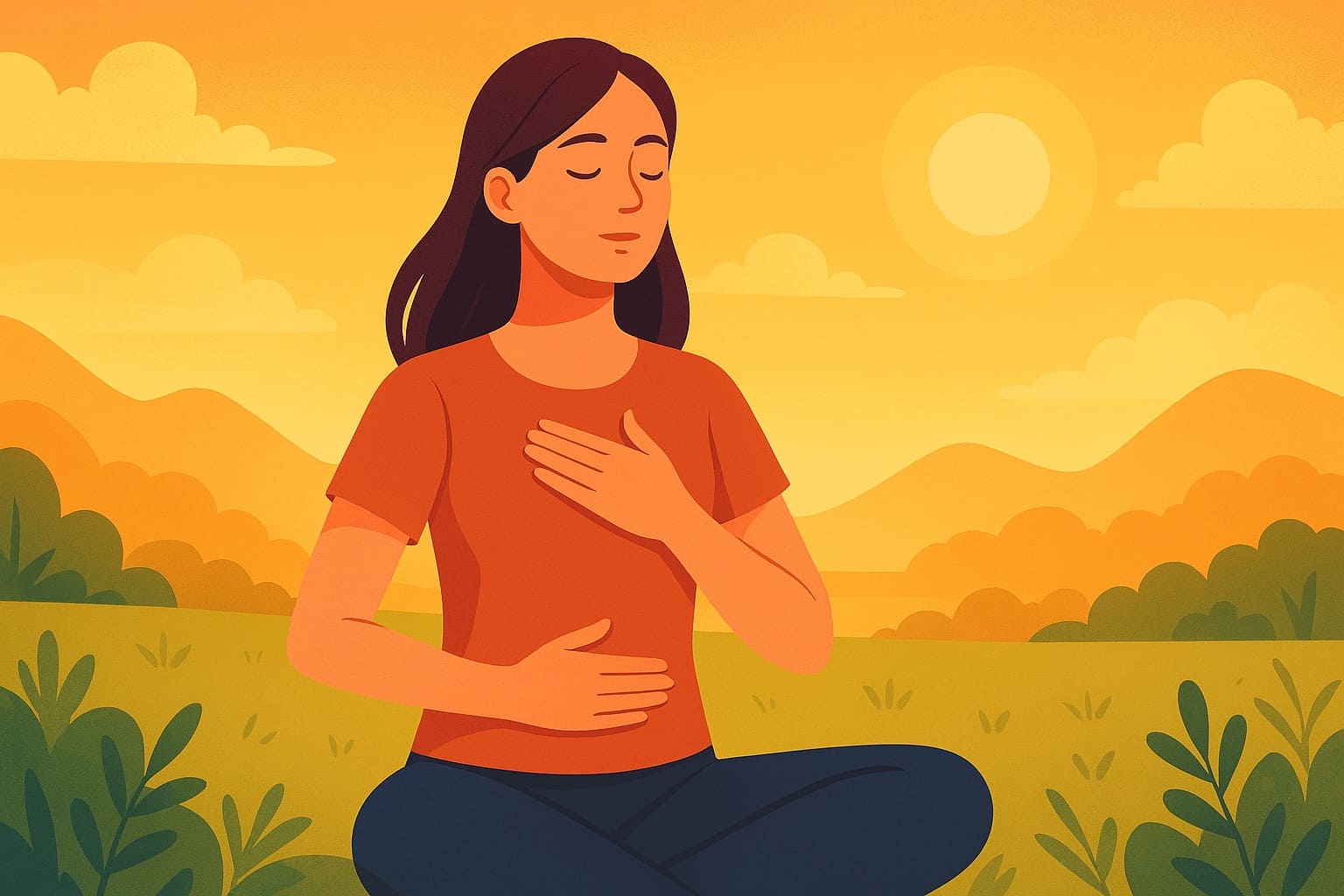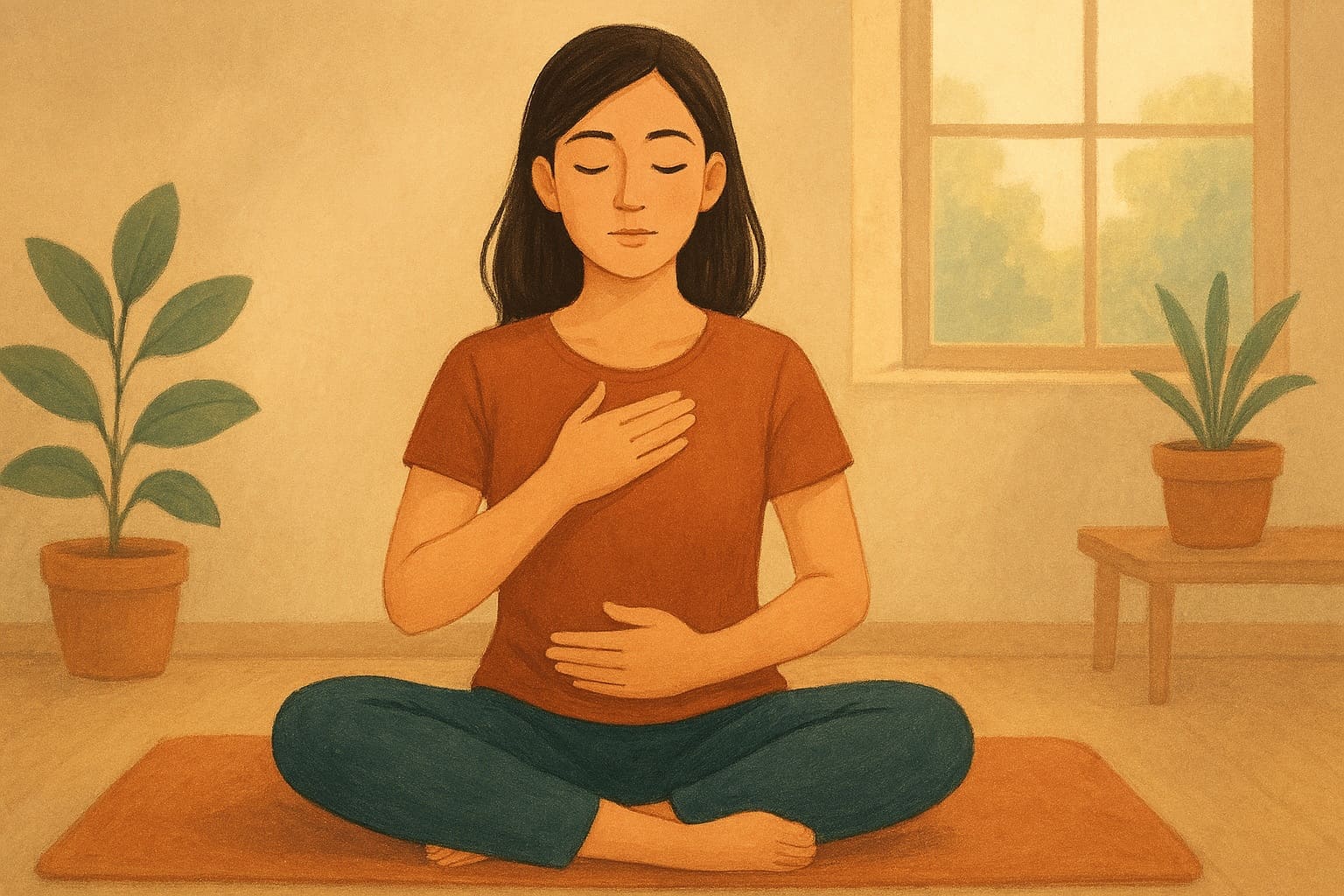 1. Thở Bụng Có Chánh Niệm (Mindful Diaphragmatic Breathing)