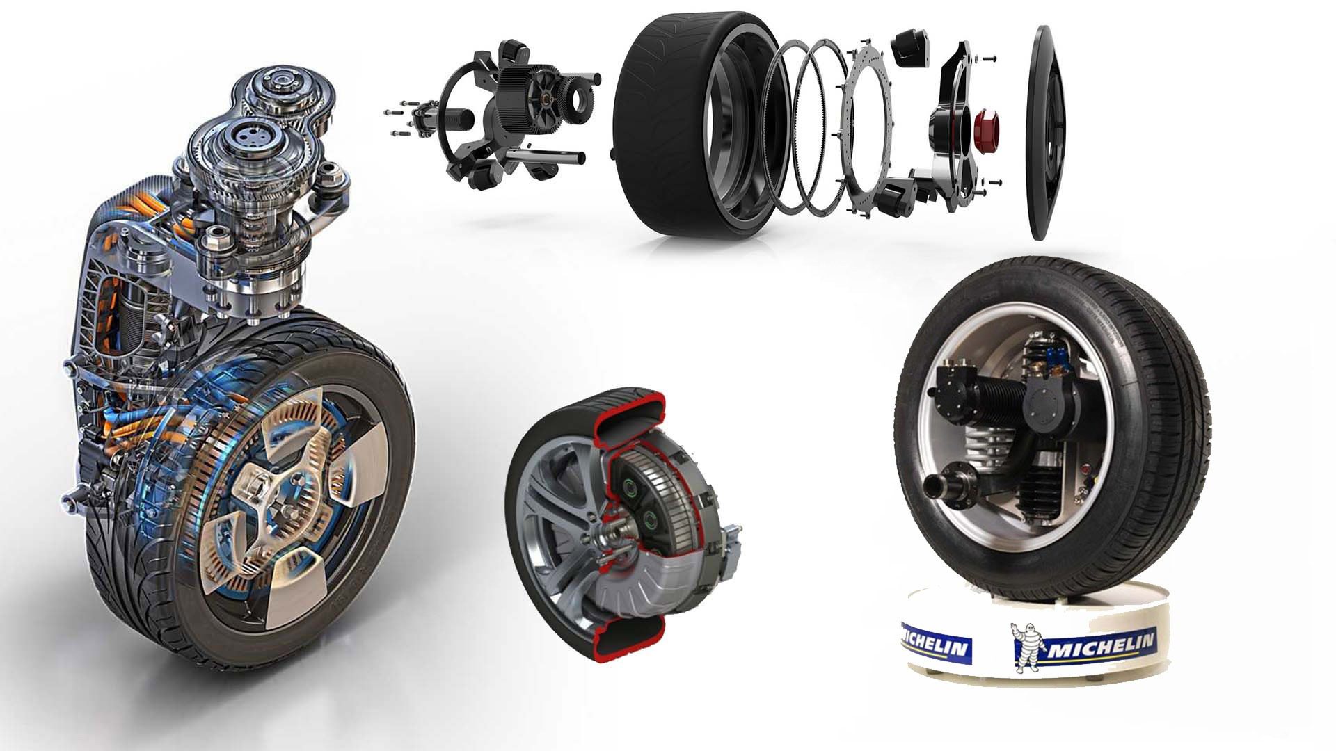 Bánh xe Chủ động Active Wheel của Michelin từ năm 2004 kết hợp một động cơ hệ thống treo điện trong bánh xe để điều khiển phân bổ mô-men xoắn, lực kéo, chuyển động quay chuyển hướng, độ nghiêng, độ lăn và giảm xóc của hệ thống treo cho bánh xe đó, bên cạnh một động cơ điện kéo trong bánh xe.