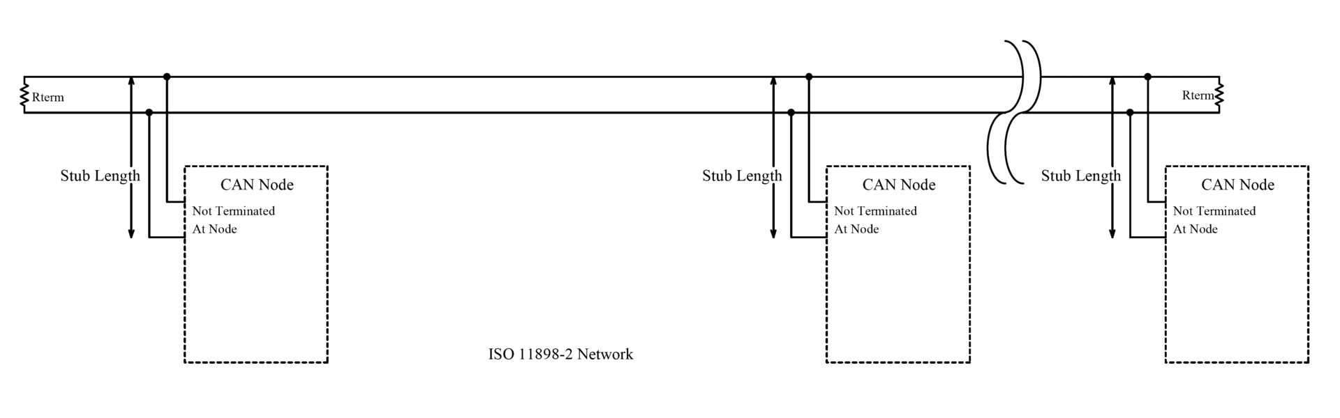CAN tốc độ cao sử dụng điện trở 120 Ω ở mỗi đầu của bus tuyến tính. CAN tốc độ thấp sử dụng điện trở ở mỗi nút. Có thể sử dụng các loại kết thúc khác như Mạch phân cực kết thúc được định nghĩa trong ISO11783.