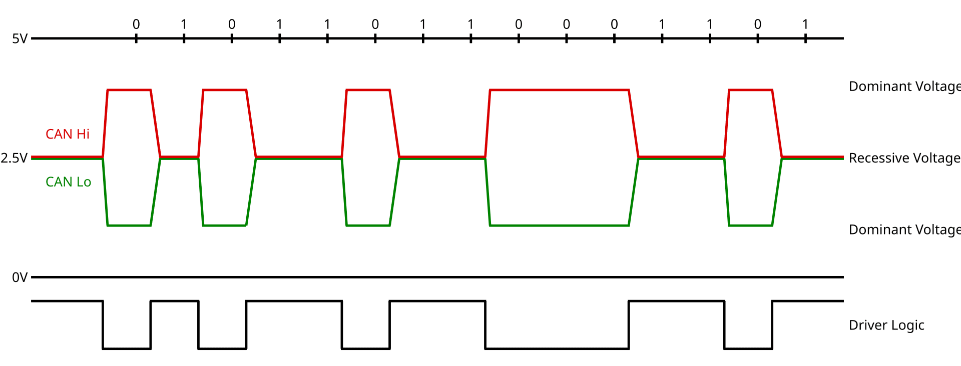 Với cả CAN tốc độ cao và tốc độ thấp, tốc độ chuyển đổi sẽ nhanh hơn khi xảy ra chuyển đổi từ trạng thái lặn sang trạng thái trội vì các dây CAN đang được điều khiển tích cực. Tốc độ chuyển đổi từ trạng thái trội sang trạng thái lặn chủ yếu phụ thuộc vào độ dài của mạng CAN và điện dung của dây được sử dụng.
