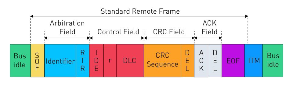 - Bit RTR (remote transmission request – yêu cầu truyền từ xa) – dùng để phân biệt khung từ xa với khung dữ liệu. Bit RTR trội (logic 0) biểu thị khung dữ liệu. Bit RTR lặn (logic 1) biểu thị khung từ xa.