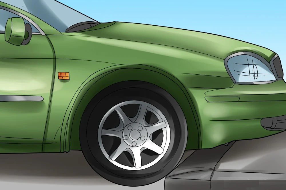Bước 4: Thực hiện kiểm tra lề đường. Lái xe vuông góc với lề đường, chẳng hạn như vỉa hè, sau đó đặt lốp trước dựa vào lề đường.