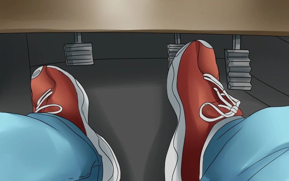 Bước 2: Kiểm tra chân phanh. Đạp bàn đạp phanh bằng chân trái và nhấn giữ bàn đạp phanh. Sử dụng chân phải của bạn để nhấn một chút ga vào động cơ, tăng tốc trong vài giây.
