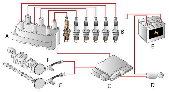 Các thành phần của hệ thống đánh lửa này giống như hệ thống đánh lửa điện tử nhưng không có bộ phân phối trong hệ thống này, các thành phần được sử dụng là: