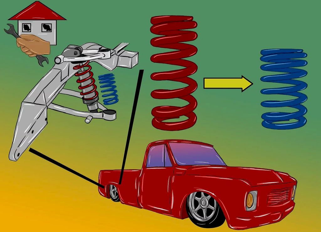 Đối với kiểu hệ thống treo sử dụng lò xo trụ, bạn có thể hạ thấp bằng cách cắt hoặc ép cho lò xo ngắn lại (cách này không khuyến nghị, vì khó có thể đảm bảo chính xác khi cắt trên các lò xo khác nhau); cách thứ 2 là thay thế bộ lò xo trụ ngắn hơn.