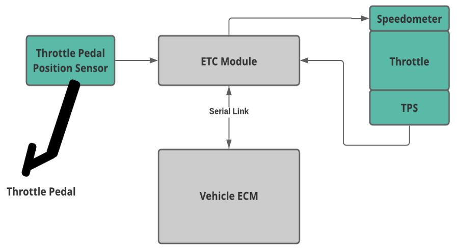Ở đây, bàn đạp thực sự có 2 chiết áp có thể xác định chính xác mức độ di chuyển của van tiết lưu và điều khiển van tiết lưu đến vị trí chính xác cần thiết. Có lực cản đối với bàn đạp này giống như bàn đạp thông thường. Thông tin này được chuyển đến mô-đun điều khiển động cơ (ECM). ECM xử lý thông tin này và chuyển nó thành các xung điện làm di chuyển thân ga điện tử. Xung điện này kích hoạt bộ truyền động trong khoảng thời gian chính xác cần thiết để giải phóng một lượng nhiên liệu cụ thể vào xi lanh động cơ. Bộ chấp hành là một mô tơ servo chạy bằng điện áp đầu vào từ ECM. Trong thân ga điện tử còn có một cảm biến gọi là cảm biến vị trí bướm ga. Cảm biến này cung cấp chính xác vị trí hiện tại của van tiết lưu và mức điện áp tương ứng với vị trí này được gửi đến ECM xử lý dữ liệu này dưới dạng vòng phản hồi, thực hiện các chỉnh sửa cần thiết, dựa trên đầu vào của người lái.