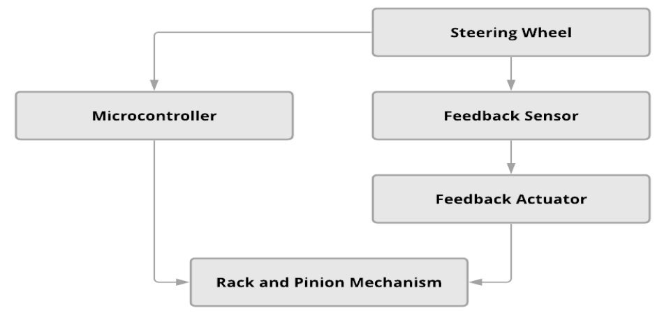 Cảm biến góc phản hồi cung cấp đầu vào ban đầu được gửi đến bộ vi điều khiển để xử lý dữ liệu đầu vào và chuyển đổi nó thành tín hiệu mà trên thực tế sẽ di chuyển các bánh xe bằng thủy lực hoặc tương tự. Ngay khi người lái bắt đầu quay vô lăng, hệ thống phản hồi sẽ hoạt động theo hướng muốn quay trở lại vị trí ban đầu. Điều này mô phỏng cảm giác lái thực tế. Sự khác biệt ở đây là phản hồi lực của tay lái có thể tăng hoặc giảm tùy thuộc vào sở thích của người lái hoặc nhà sản xuất. Bộ truyền động lái được kích hoạt sẽ quay bánh xe đến vị trí chính xác do người lái khởi động.