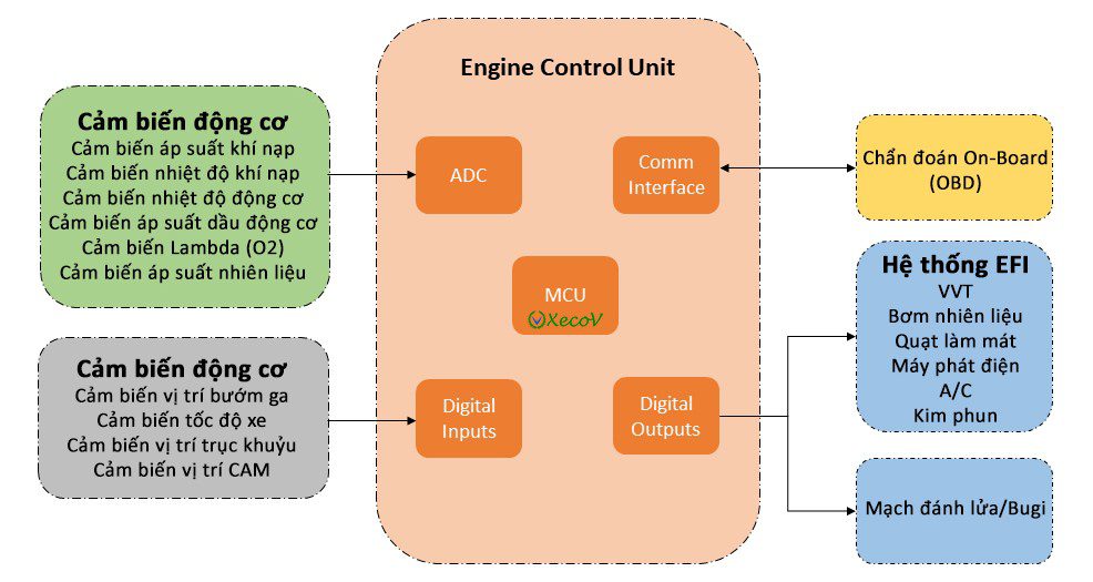 Sơ đồ khối bên dưới giải thích các thành phần chính của Bộ điều khiển động cơ.