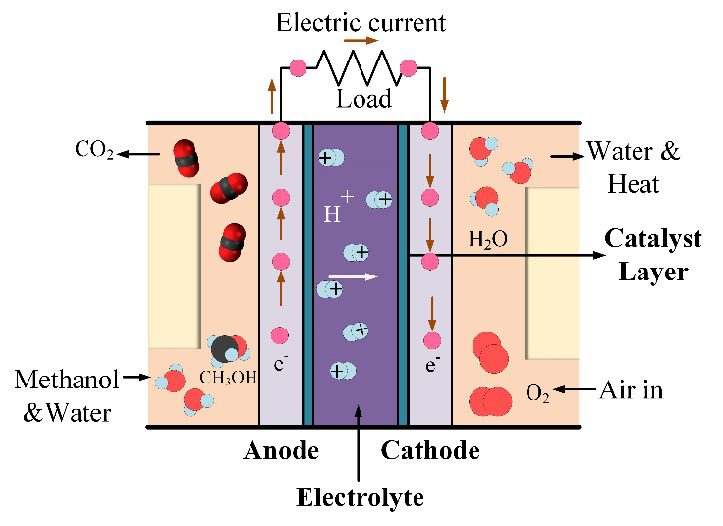 Direct methanol fuel cell – DMFC: Hầu hết các pin nhiên liệu được cung cấp năng lượng từ hydro, có thể được cung cấp trực tiếp cho hệ thống pin nhiên liệu hoặc có thể được tạo ra trong hệ thống pin nhiên liệu bằng cách cải tổ các nhiên liệu giàu hydro như nhiên liệu metanol, etanol và hydrocacbon. Tuy nhiên, pin nhiên liệu metanol trực tiếp (DMFC) được cung cấp năng lượng bằng metanol tinh khiết, thường được trộn với nước và đưa trực tiếp đến cực dương của pin nhiên liệu.