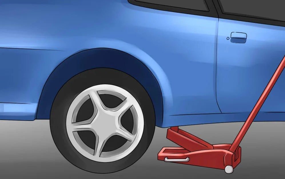 Bước 3: Đặt chặn bánh xe phía sau bánh xe. Đặt chặn bánh xe hoặc khối gỗ phía sau bánh sau của xe và cài phanh tay để ngăn xe lăn.