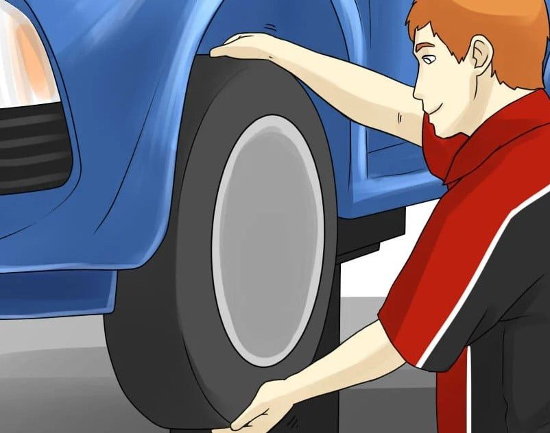 Bước 4: Lắc bánh xe trên trục của nó. Khi xe đã được nâng lên, hãy nắm lấy phần trên và dưới của lốp và lắc nó vào và ra dọc theo trục thẳng đứng của bánh xe.