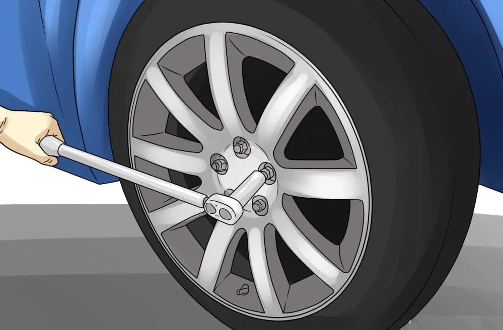 Bước 1: Nới lỏng các đai ốc. Tuy nhiên, hãy nới lỏng các đai ốc vấu, giữ chặt chúng trên tay, với bánh xe vẫn được giữ chặt một cách hợp lý vào xe. Điều này sẽ cho phép bạn di chuyển bánh xe xung quanh trục của nó (mà không cần tháo nó ra).