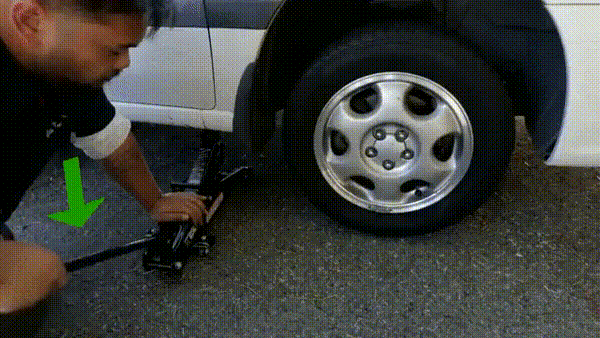 Sử dụng kích để nâng xe lên. Chú ý cần có dụng cụ chèn kê an toàn. Chèn bánh xe để tránh sự trượt bánh xe gây nguy hiểm.