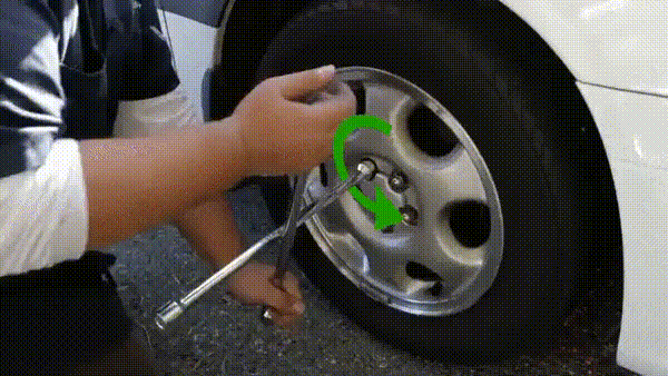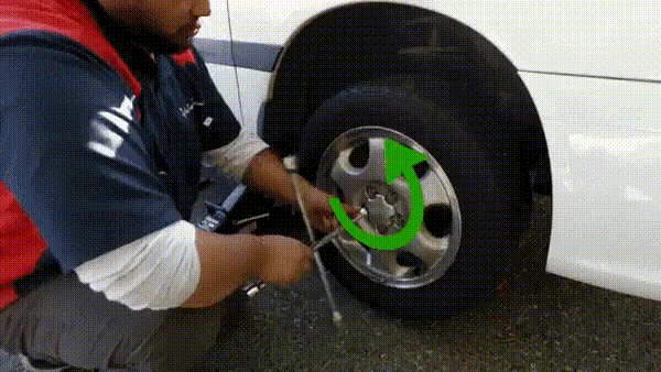 Sử dụng khẩu, tuýp chuyên dùng để nới lỏng các đai ốc ở bánh xe. Chú ý là nới lỏng khoảng 3/4 vòng, chứ không tháo hẳn đai ốc ra.