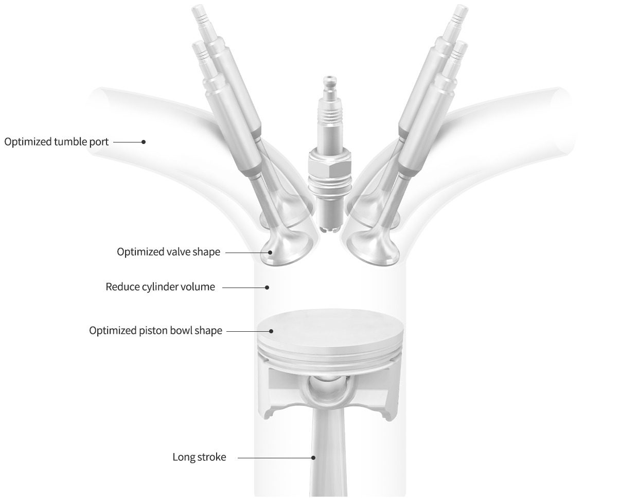 • Hệ thống đốt cháy xáo trộn cao (High Tumble Combustion System – HTCS)