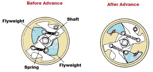 Có thể sử dụng trọng lượng nhẹ hơn hoặc lò xo nặng hơn để giảm thời điểm đánh lửa sớm ở vòng tua máy thấp hơn và ngược lại. Thông thường, tại một thời điểm nào đó trong phạm vi vòng tua máy của động cơ, các trọng lượng này sẽ tiếp xúc với giới hạn di chuyển của chúng và lượng thời điểm đánh lửa sớm ly tâm sau đó được cố định trên vòng tua máy đó.