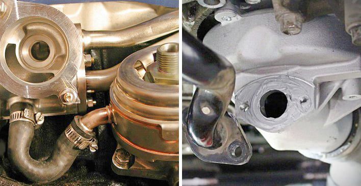 Lưu ý rằng vì các ống nước làm mát bên dưới tiếp xúc với lực hút lớn từ máy bơm nước của động cơ, một lò xo đàn hồi được quấn quanh bên trong chúng để đảm bảo ống không bị xẹp và gây ra chặn dòng nước làm mát. Giống như hầu hết các thành phần của ống mềm hiện đại, những lò xo này khá bền trong thời gian dài. Tuy nhiên, ống dẫn chất làm mát bên dưới bị vênh vào trong hoặc bị xẹp thành từng chỗ là một dấu hiệu rõ ràng cần được thay thế ngay lập tức.