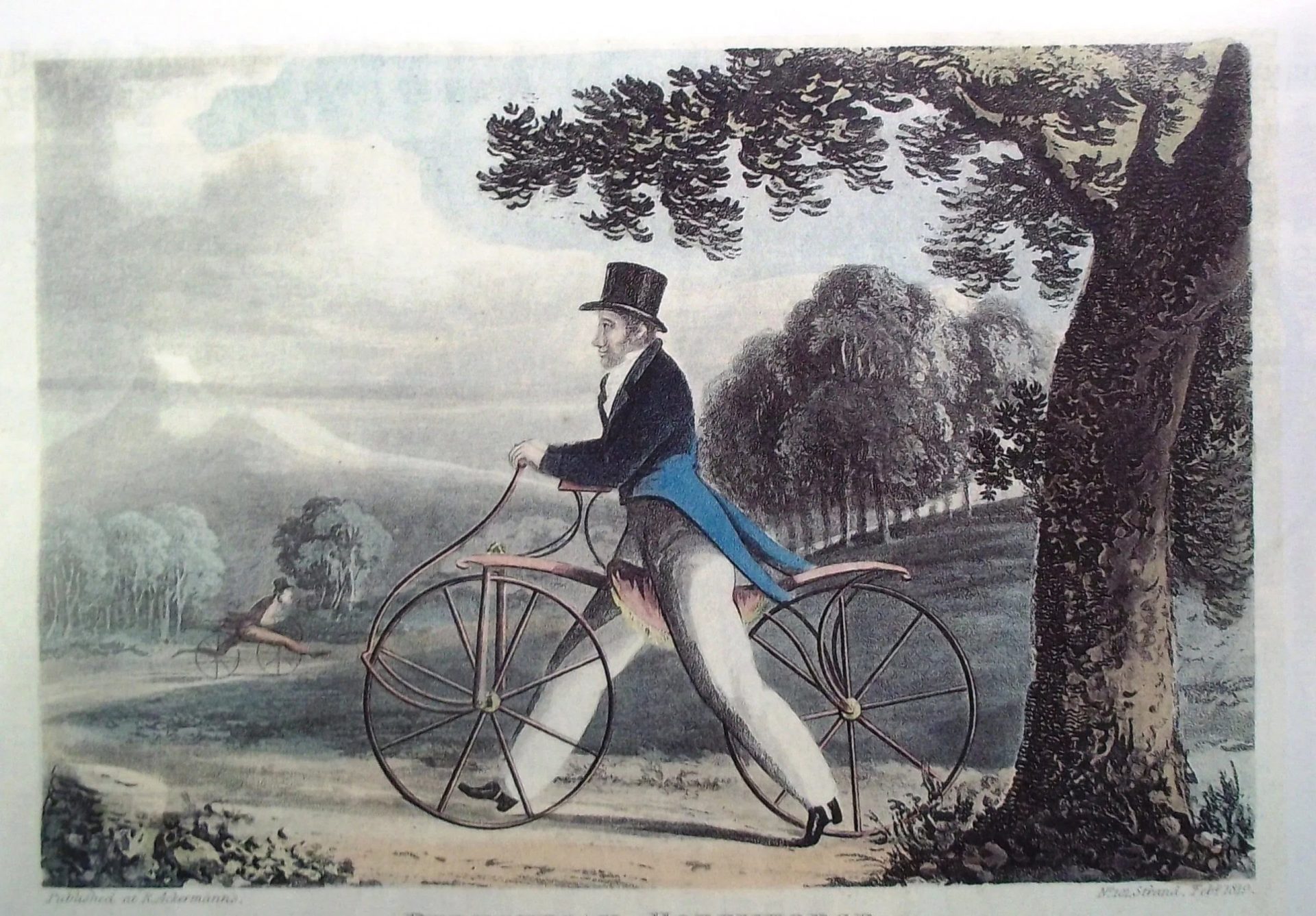 Nam tước người Đức Karl Drais von Sauerbronn đã phát minh ra một phiên bản cải tiến cho xe hai bánh, được gọi là laufmaschine, một từ tiếng Đức có nghĩa là “máy chạy”. Chiếc laufmaschine có độ bền cao được làm hoàn toàn bằng gỗ và không có bàn đạp. Do đó, người lái sẽ cần phải đẩy chân của mình xuống đất để làm cho xe tiến về phía trước. Chiếc xe của Drais lần đầu tiên được trưng bày tại Paris vào ngày 6 tháng 4 năm 1818.