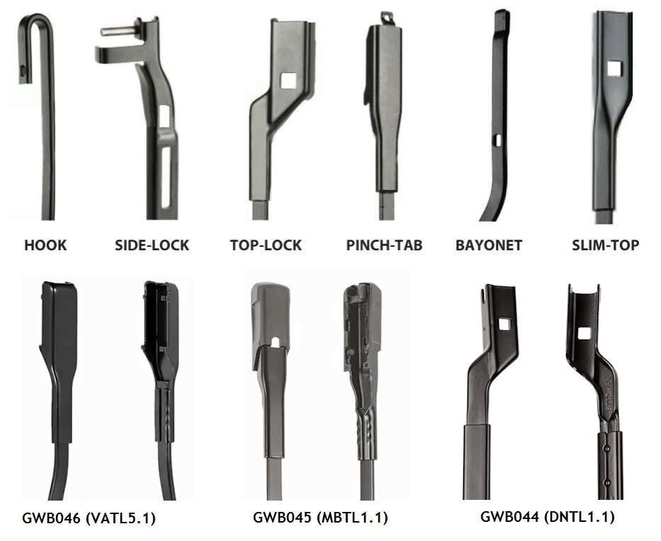 Bạn không chỉ cần lưu ý đến chiều dài của các cánh gạt – có nhiều cơ chế đính, gắn – mà bạn có nhiều khả năng gặp phải liên quan đến tay gạt nước hoặc thẳng hoặc có móc. Tuy nhiên, các nhà sản xuất bộ phận thay thế đã nghĩ ra ra các adapter lắp phổ dụng nhiều năm trước.