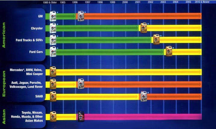 Chất làm mát kéo dài tuổi thọ màu vàng có nguồn gốc từ các nhà sản xuất ô tô châu Âu vào những năm 1980 và được bán phổ biến nhất với tên “Zerex”.