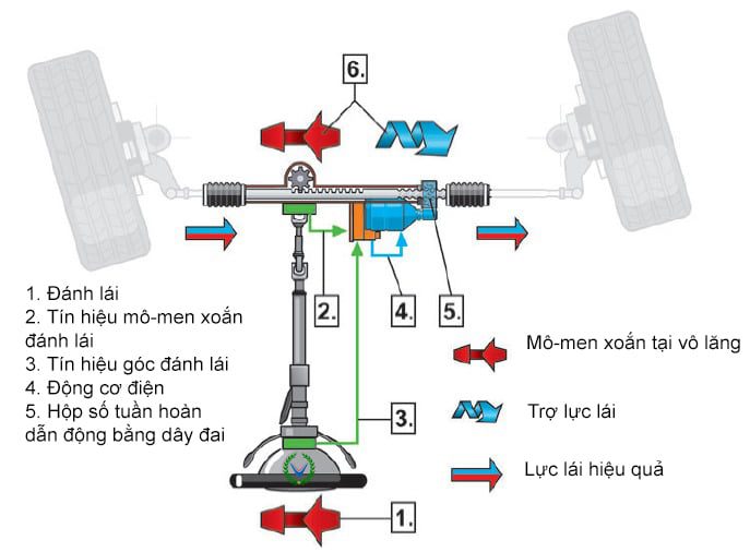 Cơ bản, hệ thống lái trợ lực điện hoạt động theo các bước đơn giản: