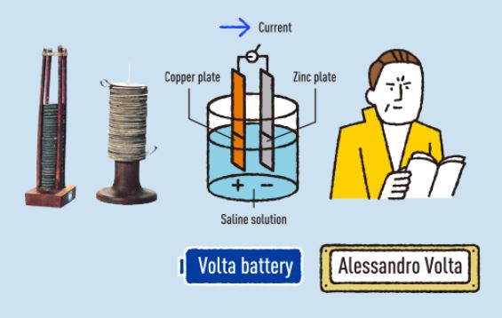 Voltaic Pile (Pin Volta) 1800 — Alessandro Volta đã phát minh ra Voltaic Pile và khám phá ra phương pháp sản xuất điện thực tế đầu tiên. Được cấu tạo từ các đĩa kẽm và đồng xen kẽ với các miếng bìa cứng ngâm nước muối giữa các kim loại, Pin Volta tạo ra dòng điện. Pin Volta của Alessandro Volta là “tế bào pin ướt” đầu tiên tạo ra dòng điện ổn định, đáng tin cậy.