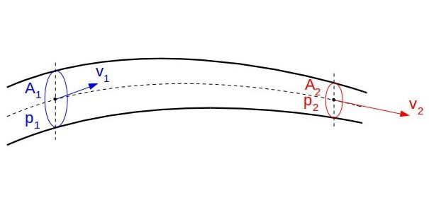 Trong diện tích lớn hơn A1, chất lỏng sẽ có tốc độ dòng khối nhất định [kg/s]. Vì khối lượng của chất lỏng được bảo toàn nên để có thể truyền cùng khối lượng đó qua diện tích nhỏ hơn A2 thì tốc độ của chất lỏng phải tăng lên. Các định luật sau đây áp dụng cho chất lỏng chảy qua ống có đường kính thay đổi: