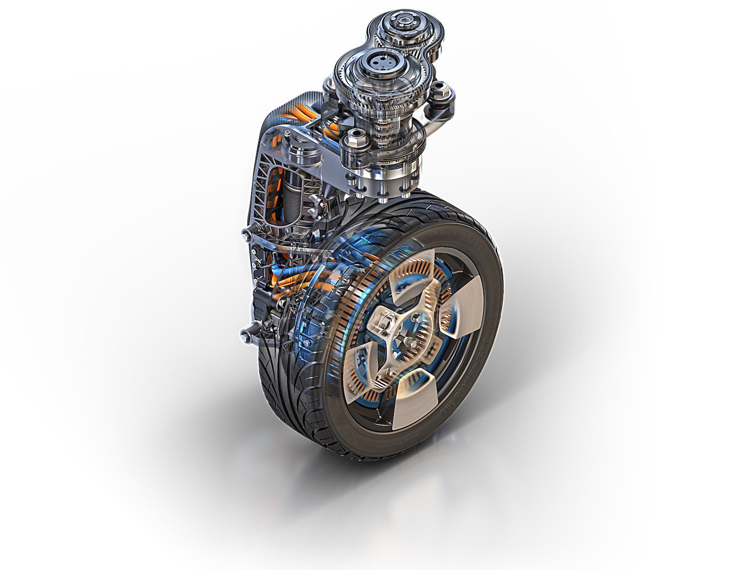 Động cơ trung tâm bánh xe có thể được thực hiện với bộ truyền động trực tiếp hoặc bánh răng hành tinh. Chúng quay bánh xe thông qua thiết kế rôto hướng trục, hướng trong hoặc hướng ngoài, với thiết kế cổ góp có chổi than hoặc không chổi than.