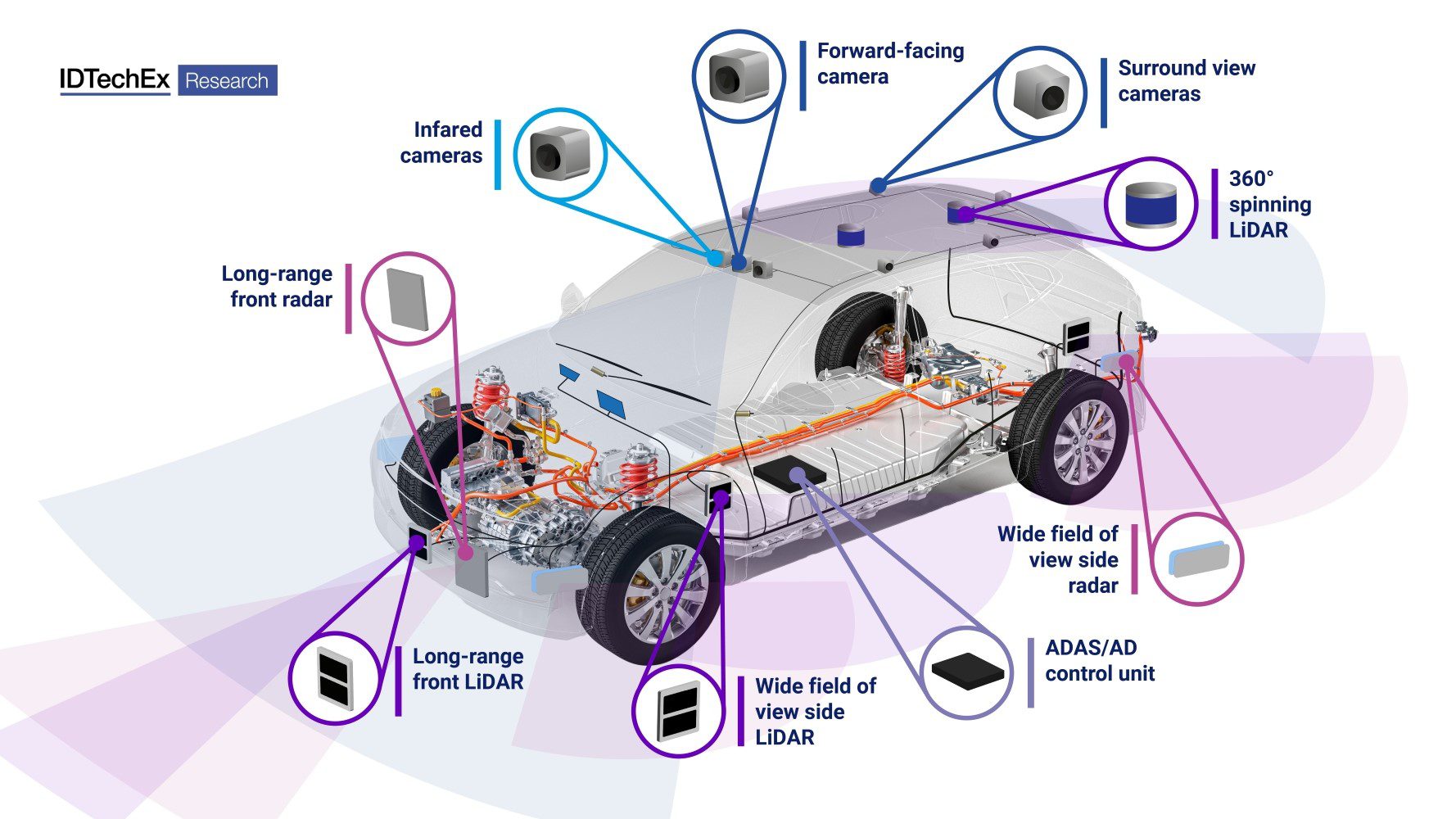 Camera không chỉ phát hiện các đối tượng mà còn phân loại chúng thành xe cộ, người đi bộ, tín hiệu giao thông, v.v. Hơn nữa, chúng còn giúp phát hiện đường và làn đường cùng với vạch kẻ đường, biển báo giao thông (biển báo đường bộ) và đèn giao thông, tầm nhìn gương chiếu hậu, v.v. Bằng cách này, camera hỗ trợ người điều khiển trong việc lái xe tự động.